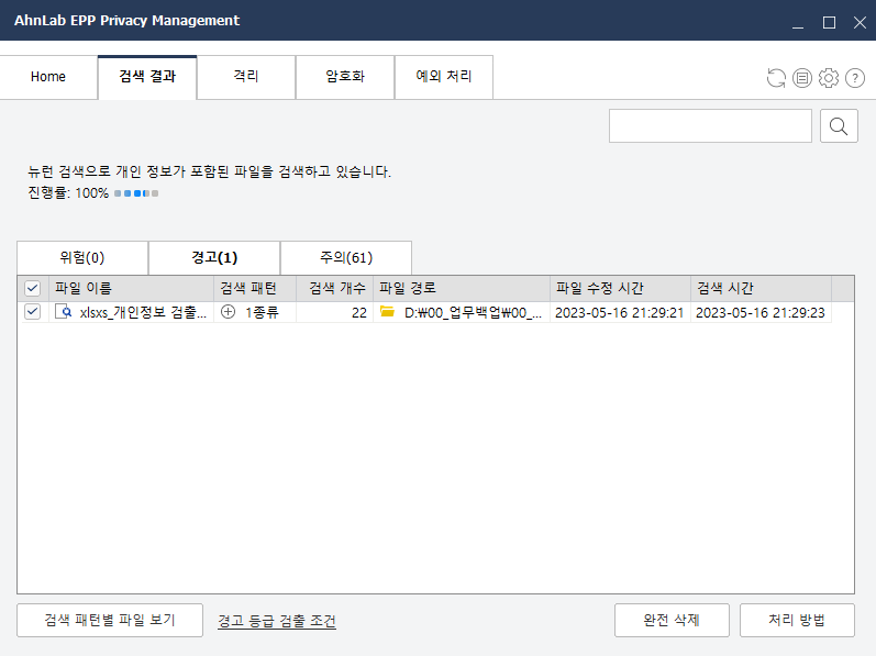 - PC에 설치되어 있는 개인정보관리 프로그램(EPrM)을 활용하여 현황 점검 및 비밀번호 설정